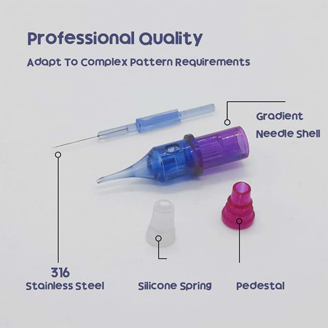 Hecho a partir de acero inoxidable de grado quirúrgico 316L , un material reconocido por su resistencia a la corrosión y la bio-incompatibilidad, aseguran la durabilidad a través de sesiones extendidas al tiempo que minimizan el trauma de la piel. El paquete azul codificado por colores se alinea con los estándares de la industria, lo que permite a los artistas identificar rápidamente los tipos de agujas incluso en entornos de estudio de ritmo rápido.