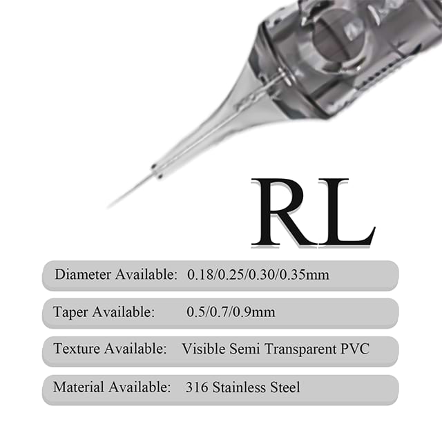 Tipos de agujas versátiles : disponibles en configuraciones de revestimiento redondo (RL) y Magnum (M1-M3), atienden a una amplia gama de trabajos detallados, desde líneas finas hasta pequeñas áreas de sombreado.